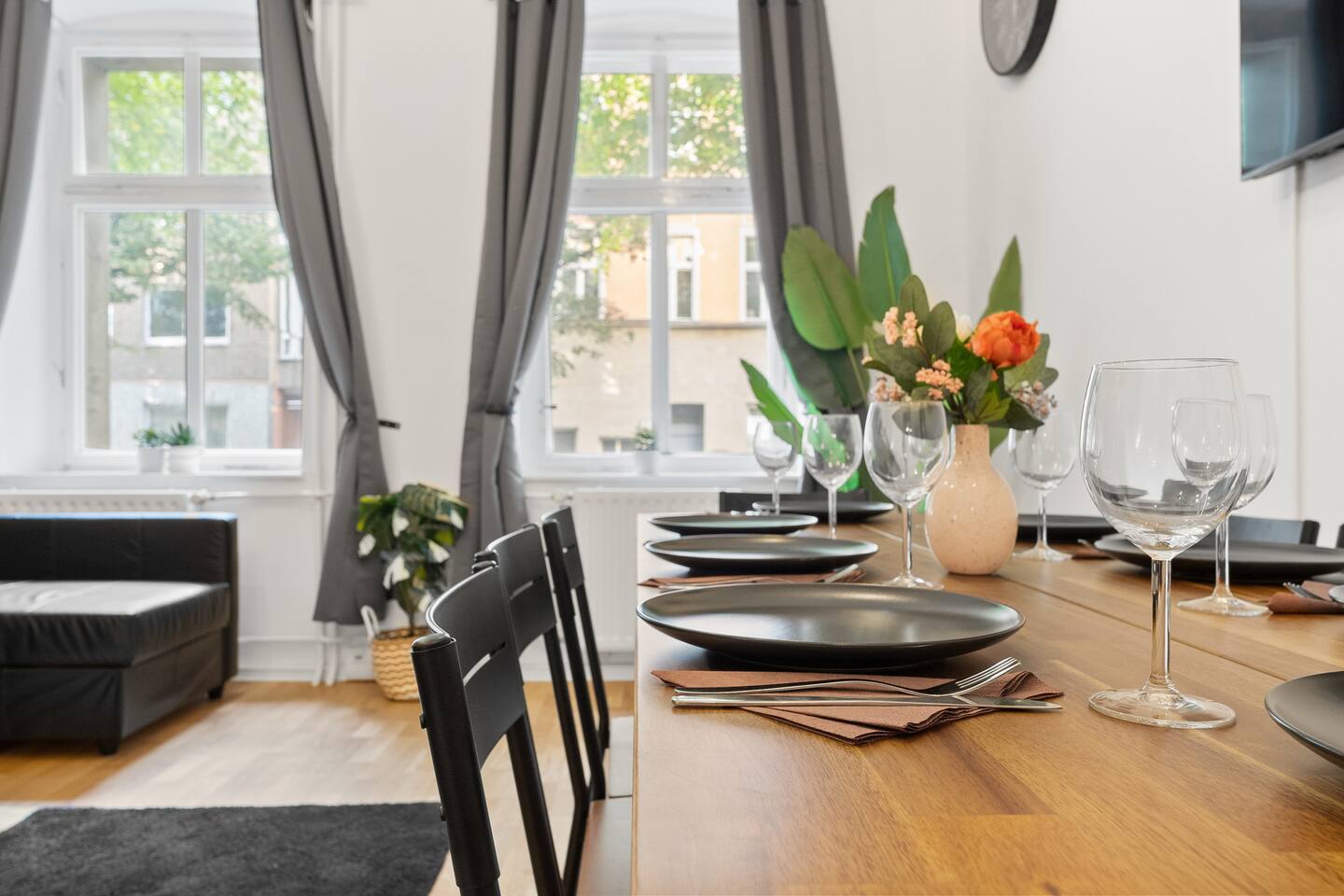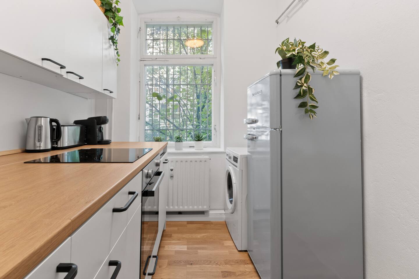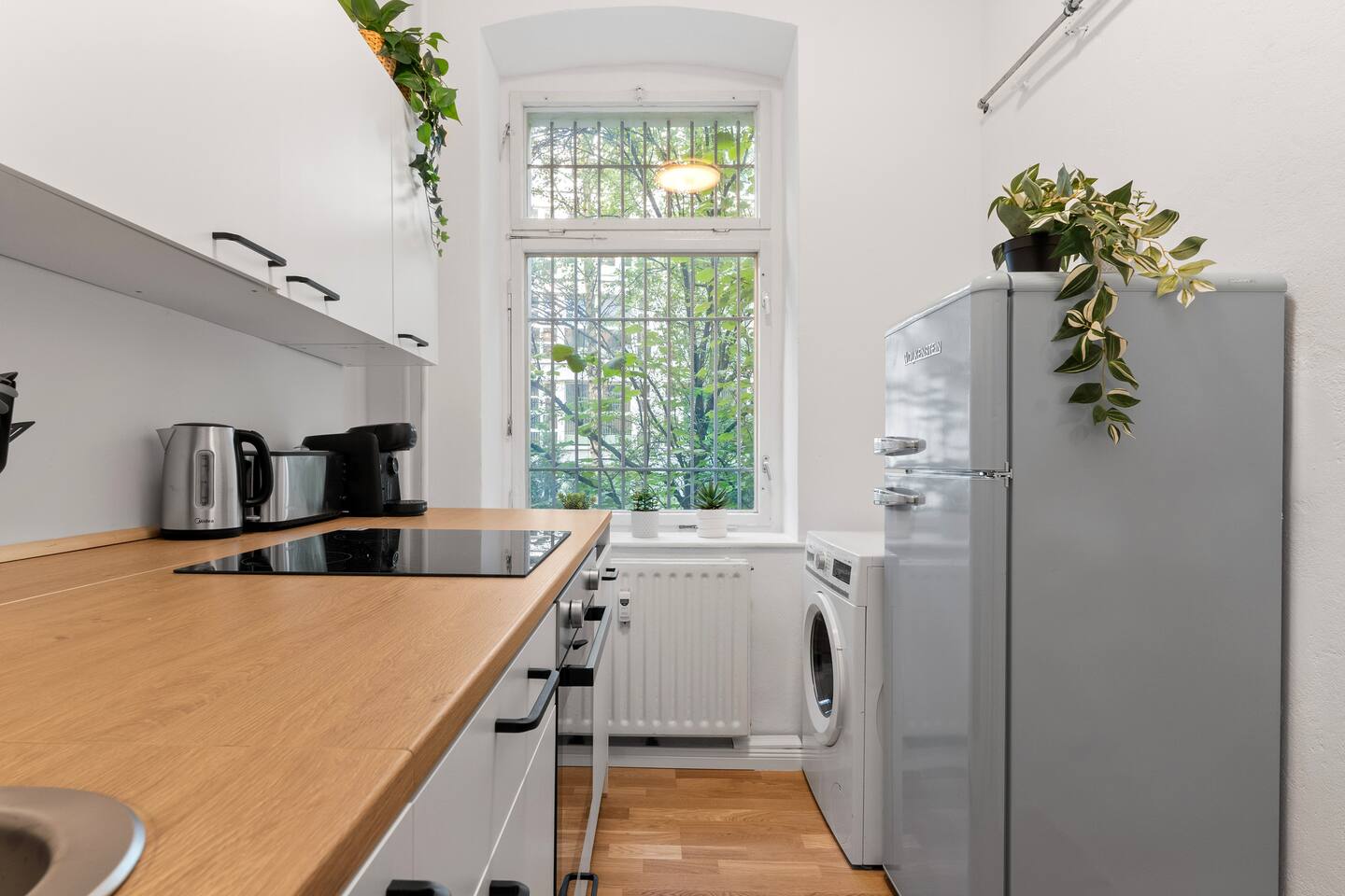 Dein sonniges Zuhause in Friedrichshain – stilvoll wohnen in Berlin Willkommen in unserer charmanten Wohnung mit Infrarot-Sauna – perfekt für alle, die Licht, Komfort und Erholung suchen. Die Unterkunft befindet sich im Erdgeschoss mit eigenem Zugang. Beste Lage: → Direkt an der U5, die dich in wenigen Minuten zu Highlights wie Alexanderplatz, Museumsinsel & Brandenburger Tor bringt. → Cafés, Restaurants und Bars im lebendigen Friedrichshain vor der Tür. Platzangebot: → Für bis zu 8 Personen geeignet. Bei voller Belegung etwas kompakter, für kleinere Gruppen (bis 6 Gäste) besonders großzügig. Highlights: → Infrarot-Sauna für entspannte Abende. → 2x King-Size-Boxspringbetten (1,80 x 2,00 m) mit Hotelbettwäsche. → 2x Schlafsofas (1,40 x 2,00 m). Wohn- & Essbereich: → Offener, heller Bereich mit Sofa & Smart-TV. → Großer Esstisch für gemeinsame Mahlzeiten oder Spieleabende. Küche: → Voll ausgestattet mit Herd, Kühlschrank, Gefrierfach, Waschmaschine, Tassimo-Kaffeemaschine & Kochutensilien. Badezimmer: → Mit Dusche → Frische Handtücher, Shampoo, Seife & Conditioner Warum diese Wohnung? Helle Räume, stilvolle Einrichtung, Südterrasse und Sauna – kombiniert mit der Top-Lage in Friedrichshain – machen sie zum perfekten Rückzugsort für Citytrips oder längere Aufenthalte. Wir freuen uns, dich bald willkommen zu heißen! Stay comfy, stay well! 😊
