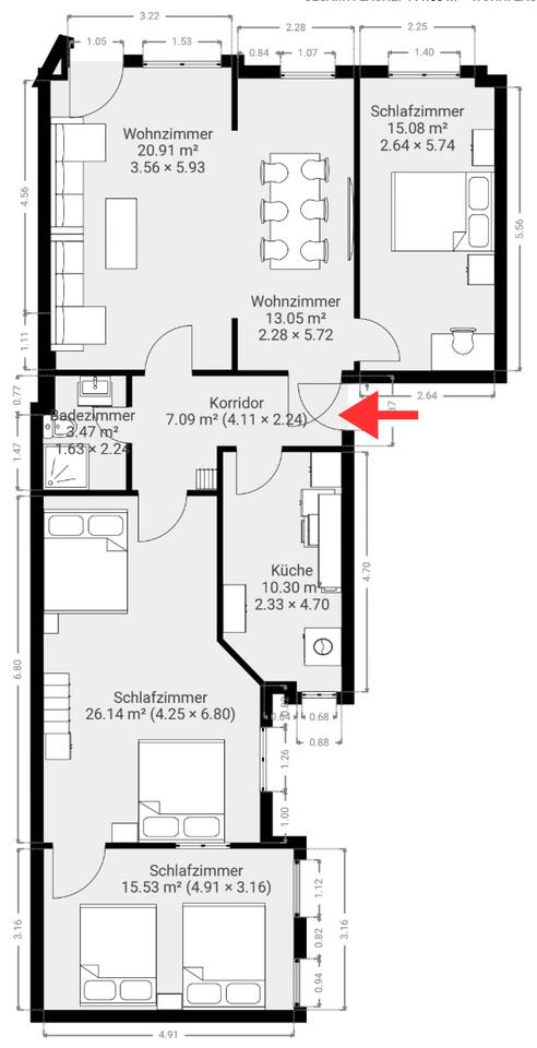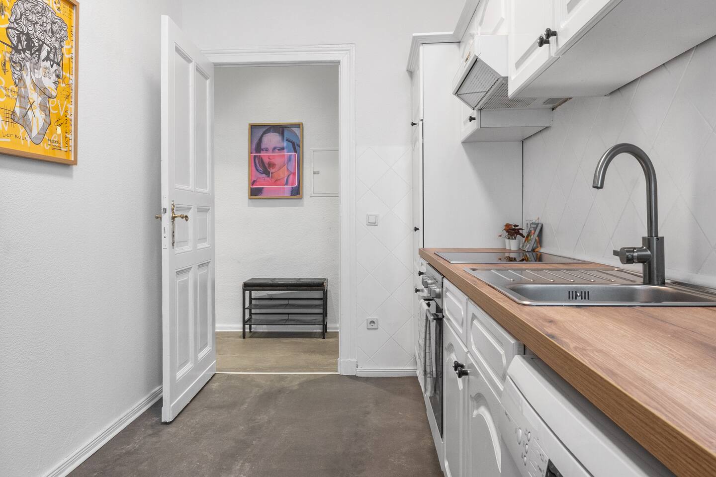 Dir steht das gesamte Apartment zur Verfügung. Fühl dich ganz wie zu Hause! Der Zugang funktioniert automatisiert über einen Code an der Tür.