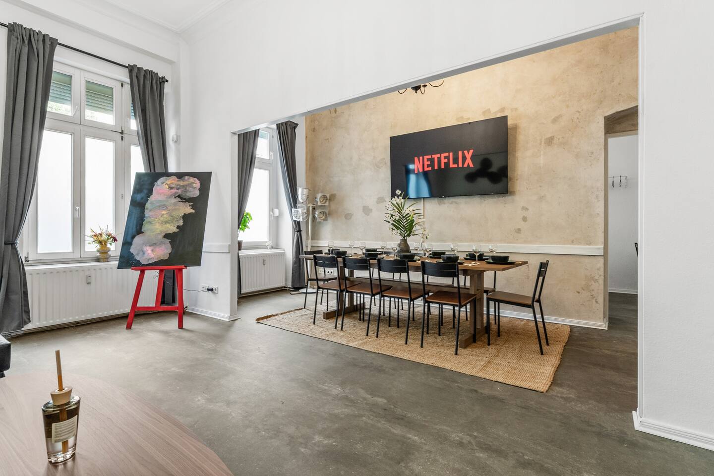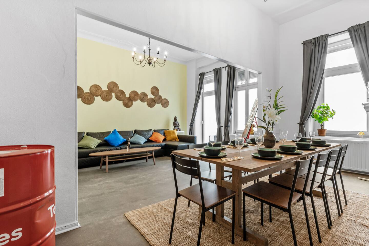 Stylish wohnen – mitten im Kiez! Willkommen in unserer großzügigen und modern eingerichteten Wohnung im Herzen des Samariterviertels – perfekt für Familien, Freundesgruppen oder Geschäftsreisende. Hier treffen Kreativität, Bars, Restaurants und Cafés aufeinander. Platz für bis zu 10 Personen Drei Schlafzimmer mit insgesamt 5x Queen-Size-Boxspringbetten (1,60 x 2,00 m) bieten erstklassigen Schlafkomfort. Wohn- & Essbereich → Großes Sofa & 75" Smart-TV für gemütliche Filmabende → Essbereich für bis zu 10 Personen – ideal für gemeinsame Abendessen Voll ausgestattete Küche → Herd, Ofen, Kühlschrank, Toaster & Tassimo-Kaffeemaschine → Alles da, was ihr zum Kochen & Genießen braucht Praktische Extras → Arbeitsplatz mit schnellem WLAN – perfekt für Remote Work → Waschmaschine – ideal für längere Aufenthalte → Kompaktes, funktionales Bad mit Dusche → Frische Handtücher, Shampoo, Duschgel und Conditioner inklusive Top Lage im Samariterviertel → Kreatives Szeneviertel mit Bars, Cafés, Restaurants & Boutiquen → Nur 750 m zur U-Bahn Samariterstraße → Beste ÖPNV-Anbindung direkt vor der Tür – Berlin liegt euch zu Füßen Warum hier übernachten? → Viel Platz, stylisches Ambiente & smarte Ausstattung → Ideal für Gruppen, Familien oder Geschäftsreisende → Authentisches Berlin-Flair in einem der spannendsten Kieze der Stadt Stay comfy, stay well!