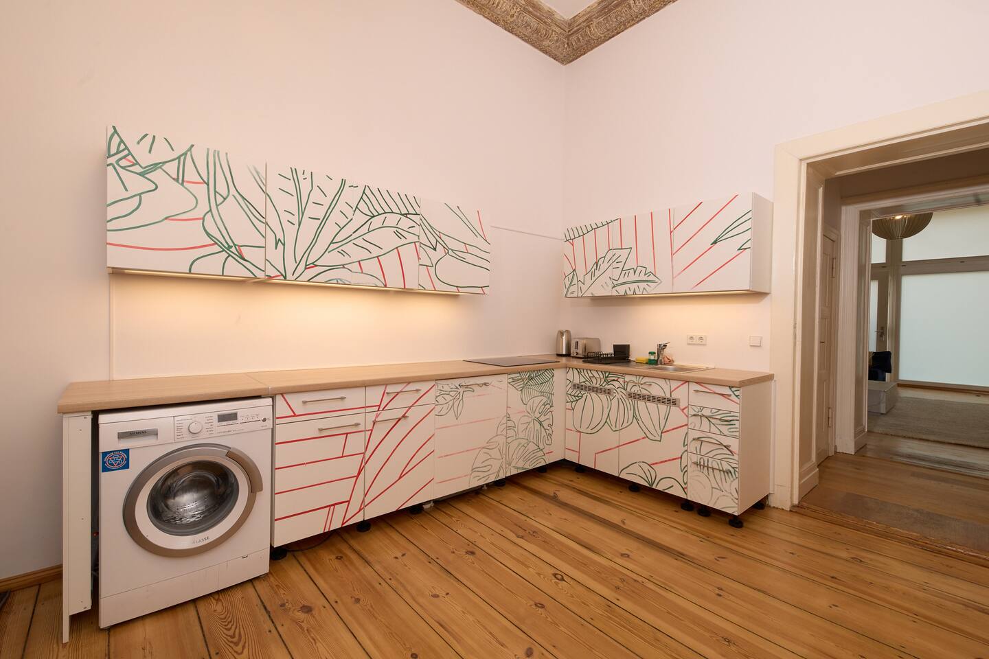Willkommen im Herzen der Hauptstadt bei STAYWELL! Nur wenige Schritte vom Schloss Bellevue entfernt, erlebt ihr hier Berlin von seiner besten Seite. Entdeckt das kleinste Bad Berlins in diesem Apartment. Unsere stilvoll eingerichtete Wohnung verfügt über alles, was du für einen schönen Aufenthalt brauchst: → 4x Queen-Size-Boxspringbetten → 2x Schlafsofas → Das kleinste Badezimmer Berlins → Beamer → Küchenzeile mit 2x Mikrowellen, Herd, Ofen, Toaster und Kaffeemaschine → Waschmaschine