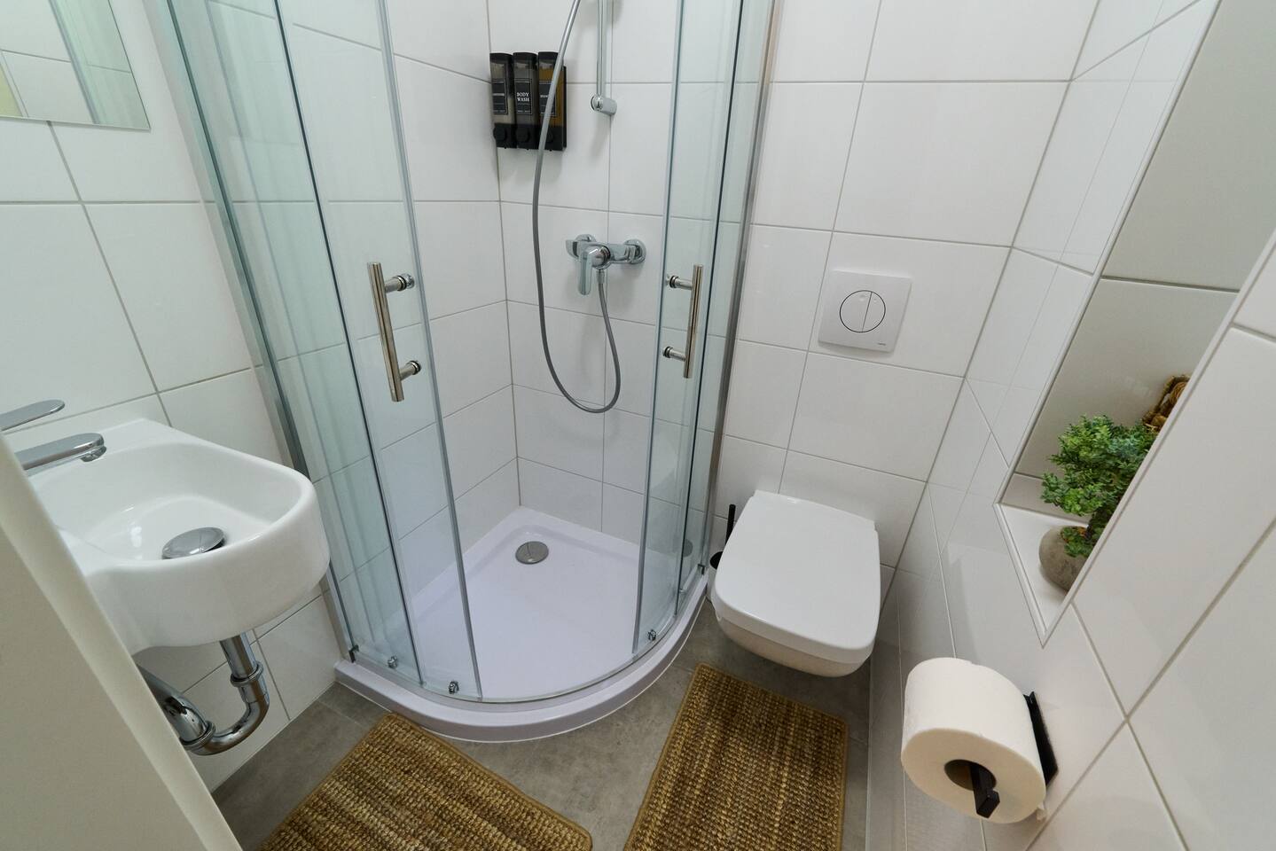 - Wesentliches Towels, bed sheets, soap, toilet paper, and pillows