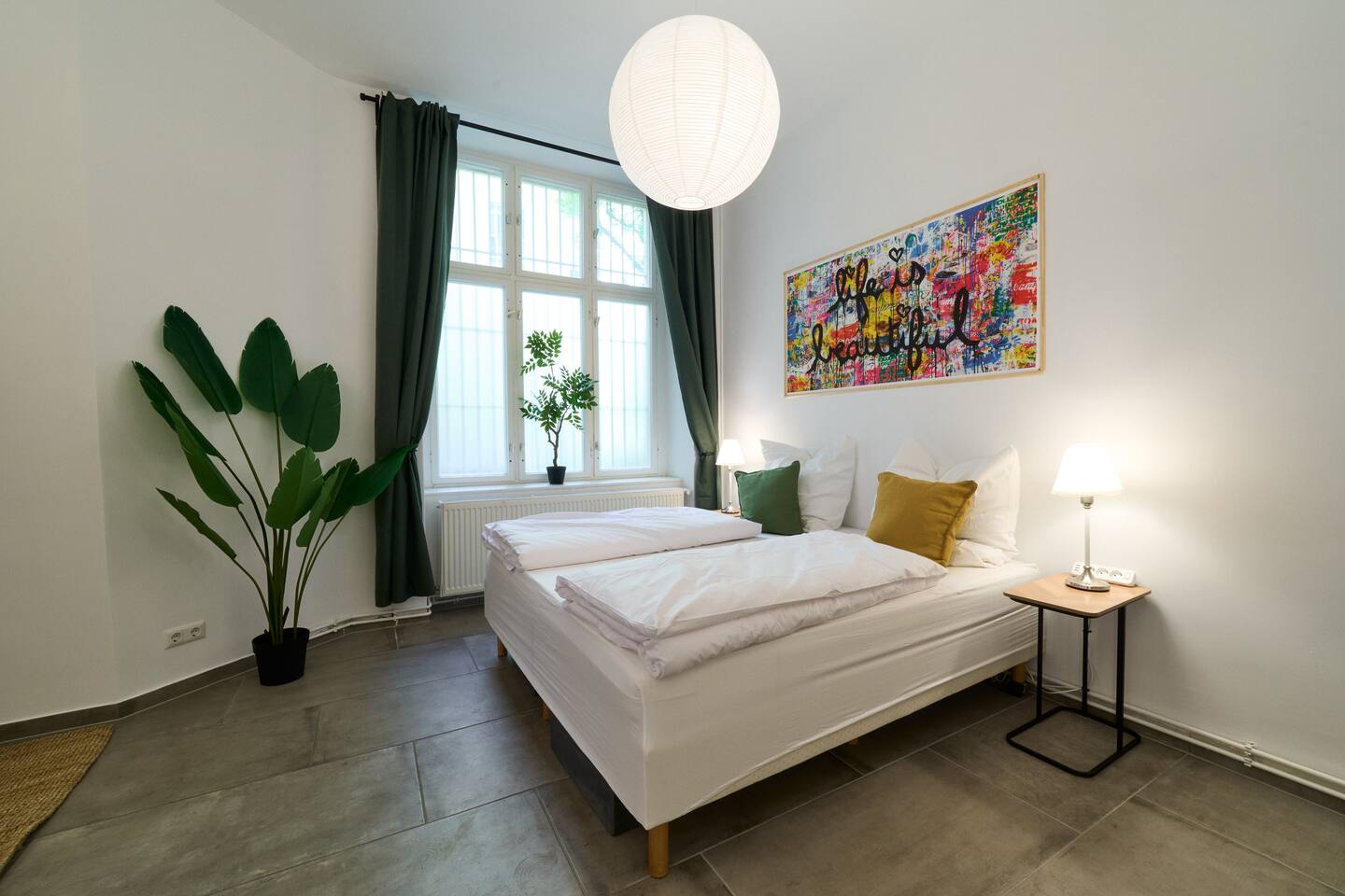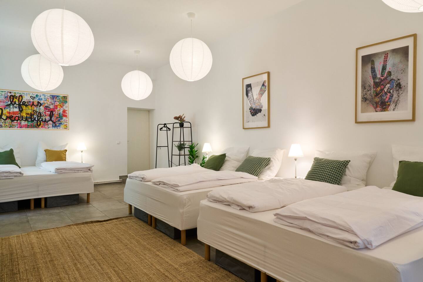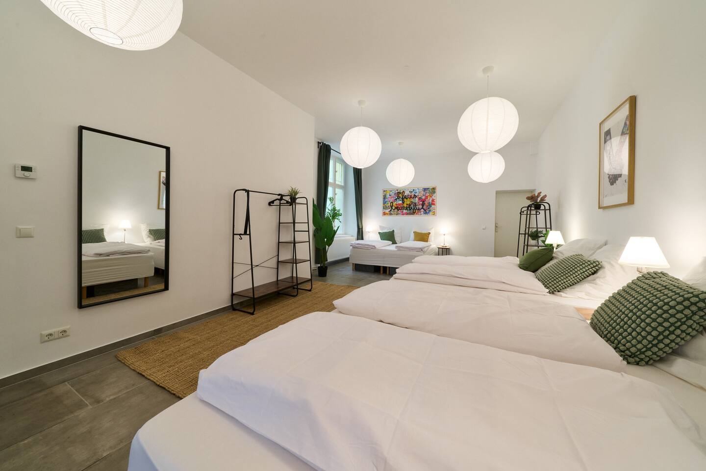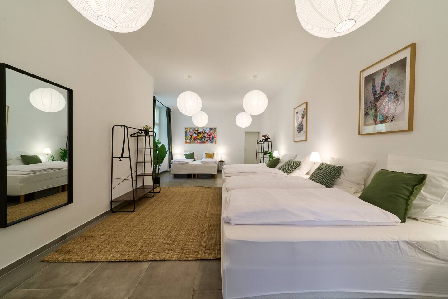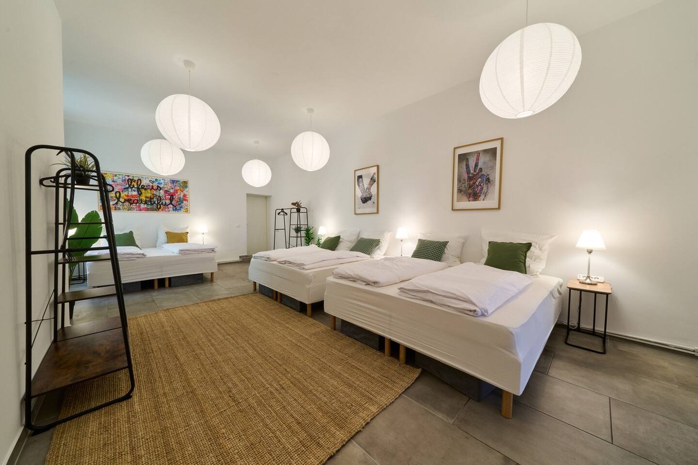 Willkommen bei YASMIN STAY in Berlin Prenzlauer Berg! In unserem stilvollen Apartment im Herzen des lebendigen Prenzlauer Bergs – nur wenige Schritte von Cafés, Boutiquen und dem beliebten Mauerpark entfernt. Erlebt den Charme des kleinsten Bads Berlins. Dich erwartet: → 3x King-Size Boxspringbetten → 2x Schlafsofas → 65" Smart-TV → Tassimo Kaffeemaschine → Küchenzeile mit Kühlschrank, Herd, Ofen und Toaster → Waschtrockner → Beste ÖPNV-Anbindung